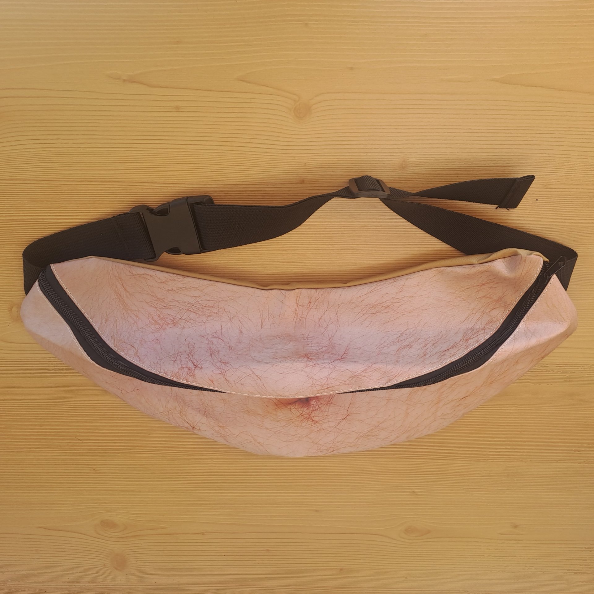So täuschend ähnlich ist diese aus PU- Material hergestellte Bierbauchtasche für Männer.