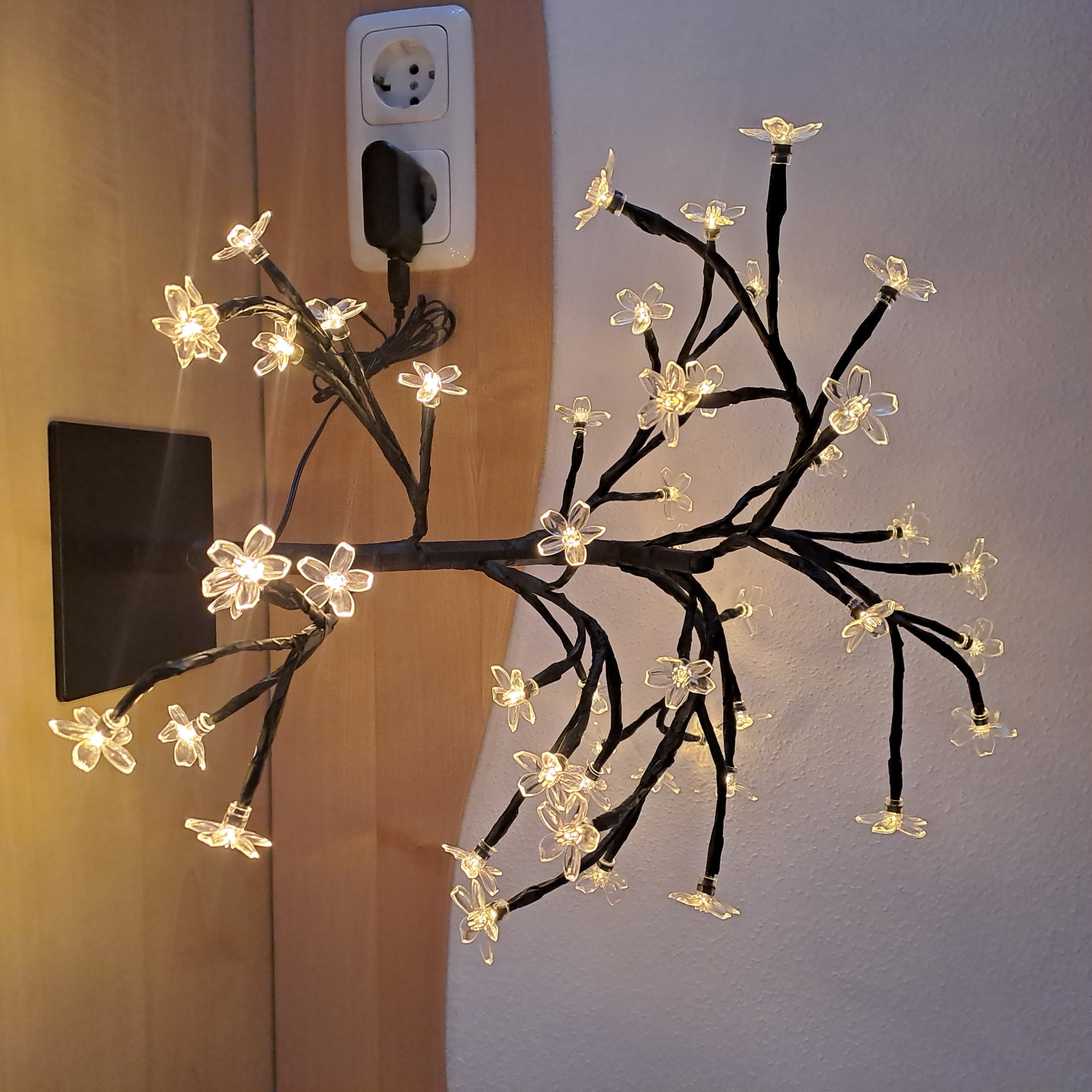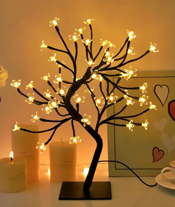 Sehr schöner 40 cm hoher Bonsai LED Baum mit 48 Blüten und sehr beruhigendem, warmweißem LED- Licht.