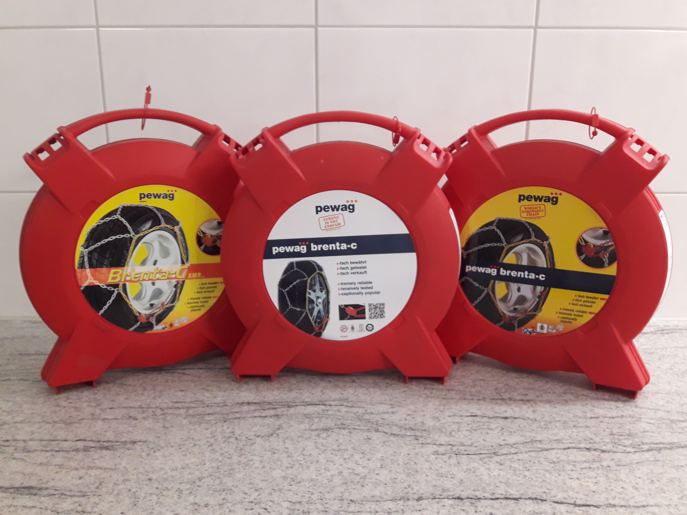 Die Pewag Brenta C XMR sind sehr beanspruchbare Standmontage-Schneeketten für normalen Einsatz, mit Stahlseilring und manueller Nachspannung, ohne Felgenschutz