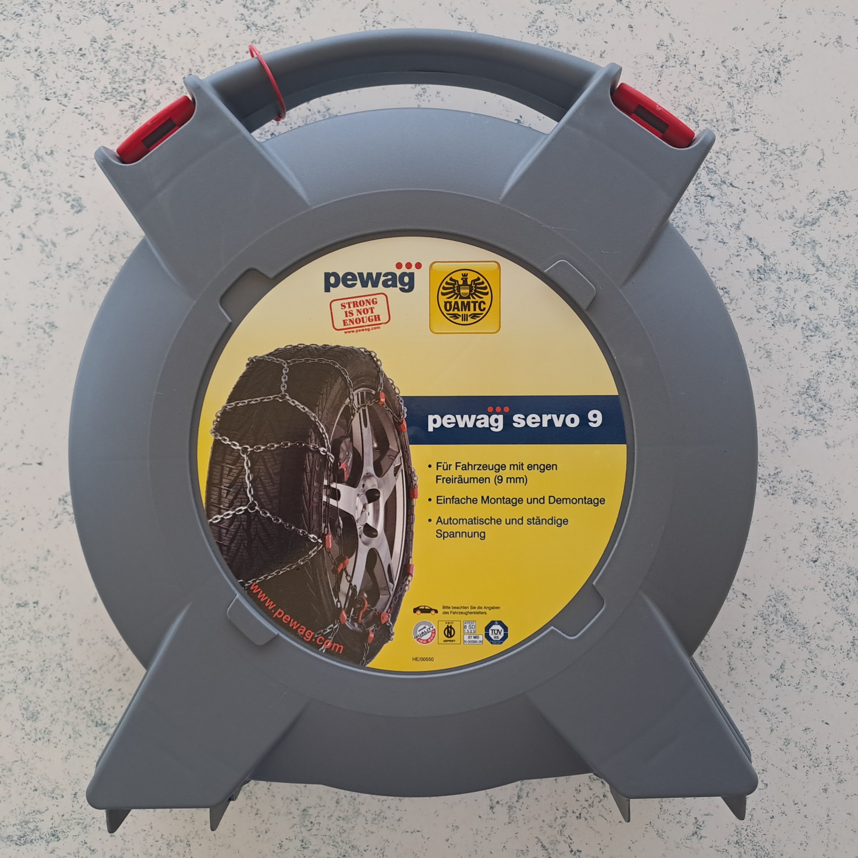 Die Pewag Servo 9 RS9 sind sehr zarte Standmontage-Schneeketten für den Einsatz bei Fahrzeugen mit sehr wenig Platz im Radkasten. Diese Ketten brauchen nur 9 mm Platz im Radkasten! Sie sind mit Stahlseilring, automatischer Nachspannung und Felgenschutz ausgestattet. Diese Ketten können für die meisten Fahrzeuge verwendet werden. Sie sind für gelegentlichen Gebrauch auf befestigten und eher flachen Straßen ausgelegt! Nur bedingt für den Gebrauch auf Bergstraßen geeignet! Der Vorteil dieser Ketten ist die Standmontagetechnik (kann am Stand montiert werden, ohne das Fahrzeug zu bewegen, also auch wenn man schon festhängt!), die einfache und rasche Montage sowie die automatische Nachspannung (die Ketten werden durch eine Servo Ratsche nachgespannt, man muss also nicht mehr anhalten und die Ketten nachspannen) und die flache Bauweise.