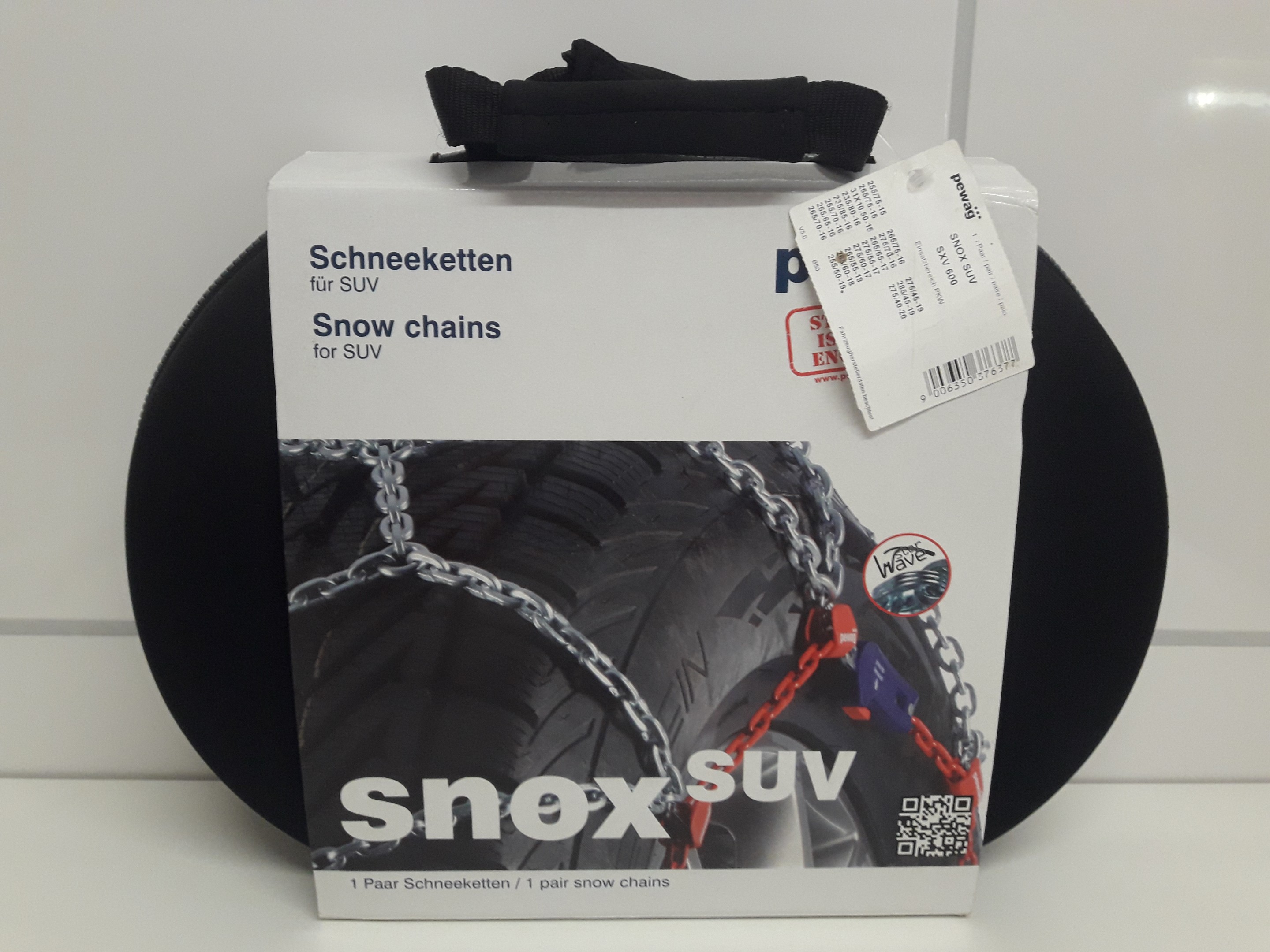 Die Pewag Snox SUV RSV ist der große Bruder der Pewag Snox Pro und wird wegen der sehr einfachen Montage auch die frauenfreundliche Schneekette und wegen ihrer Bauweise auch Gummischneekette genannt! Bei der Montage einfach drüberziehen- spannt und zentriert sich von selbst- bei der Demontage einfach runterziehen. Einfach beschrieben ist es eine Schneekette mit einem Spanngummi rundherum.